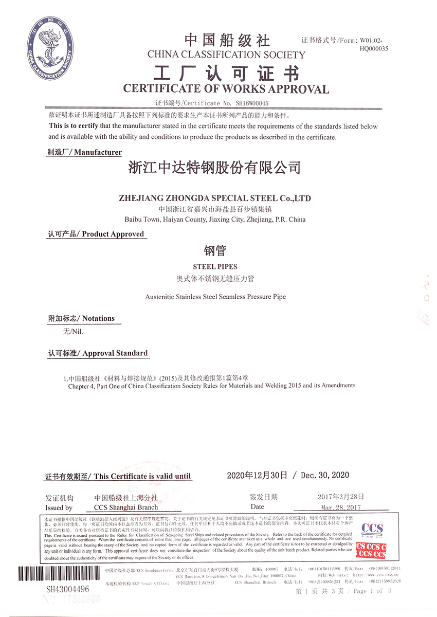 With two decades’ experiences in specialized production of seamless stainless steel tubes, it focuses on the production and sale of seamless stainless steel tubes for boilers, heat exchangers, petrochemical industry, and nuclear power industry. It is the first company which obtains the manufacture license of civil nuclear safety equipment, and license for scientific research and production of weapons in Jiaxing City.