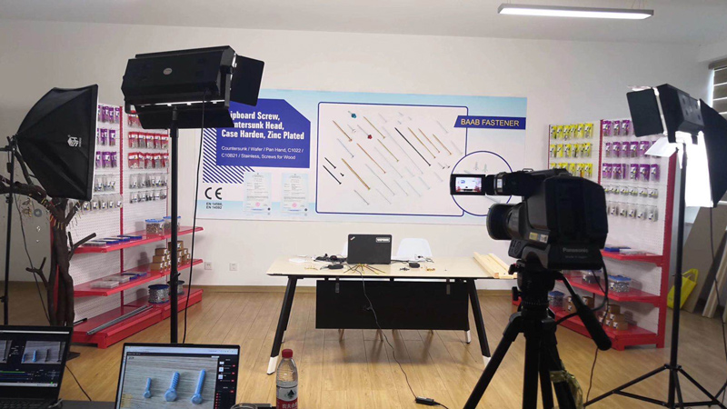 經(jīng)過(guò)商議,公司確定將五金收納部的直播間設(shè)在四樓,將緊固件直播間設(shè)置在五樓。各業(yè)務(wù)部經(jīng)理帶領(lǐng)自己部門團(tuán)隊(duì),分工協(xié)作,收集整理展品信息,準(zhǔn)備展示樣品。同時(shí),公司事業(yè)發(fā)展部也積極配合,協(xié)助開(kāi)展企業(yè)視頻、產(chǎn)品視頻等拍攝工作。在搭建布置直播間時(shí),大家集思廣益,共同設(shè)計(jì)相關(guān)海報(bào),創(chuàng)意擺放各種展品,特別是緊固件部門,專門制作了趣味釘子樹,呈現(xiàn)給觀眾的展廳不亞于廣交會(huì)的現(xiàn)場(chǎng)展廳。