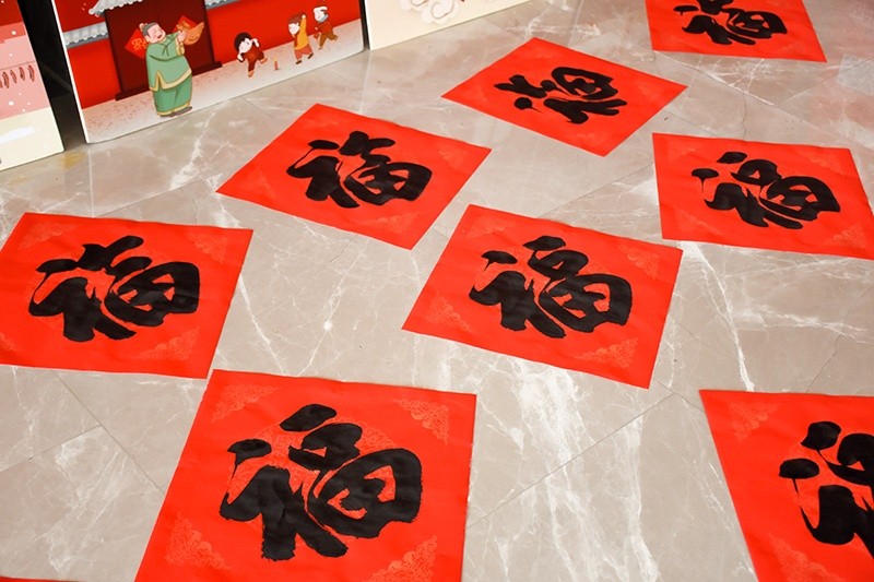 貼春聯(lián)的習俗一直延續(xù)至今,集團工會和張元濟圖書館的本次活動,結(jié)合了“春節(jié)民俗文化”專題展覽,讓中華民族的優(yōu)秀傳統(tǒng)文化在企業(yè)中流傳。活動現(xiàn)場歡聲笑語,充滿了喜慶的節(jié)日氣氛,隨著倒墨、鋪紙、潤筆等準備工作就緒,書法家們飽蘸濃墨,盡情揮毫,一停一頓、一起一落間,一幅幅充滿喜慶、吉祥、祝福、歡樂的春聯(lián)和福字在他們的筆下誕生,將春聯(lián)、福字送到員工手中。