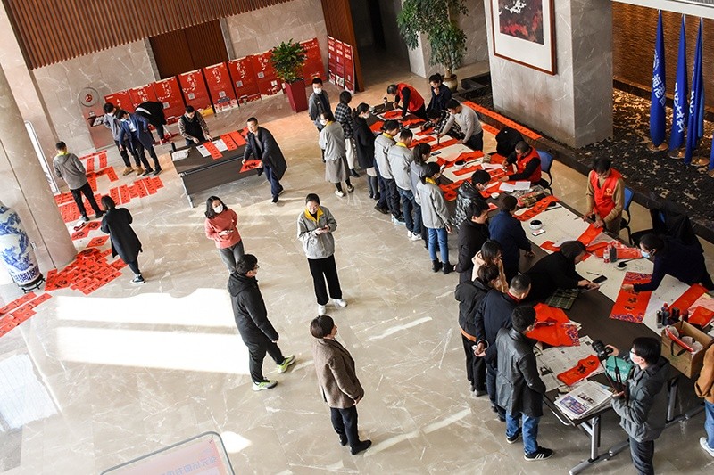 2月6日,中達集團的大廳里書案齊備,墨香四溢。來自海鹽縣書法家協(xié)會的書法家代表們齊聚一堂,在現(xiàn)場為中達集團的員工們寫春聯(lián)送福字,將春節(jié)的喜慶和祝福提前送到員工們的身邊。