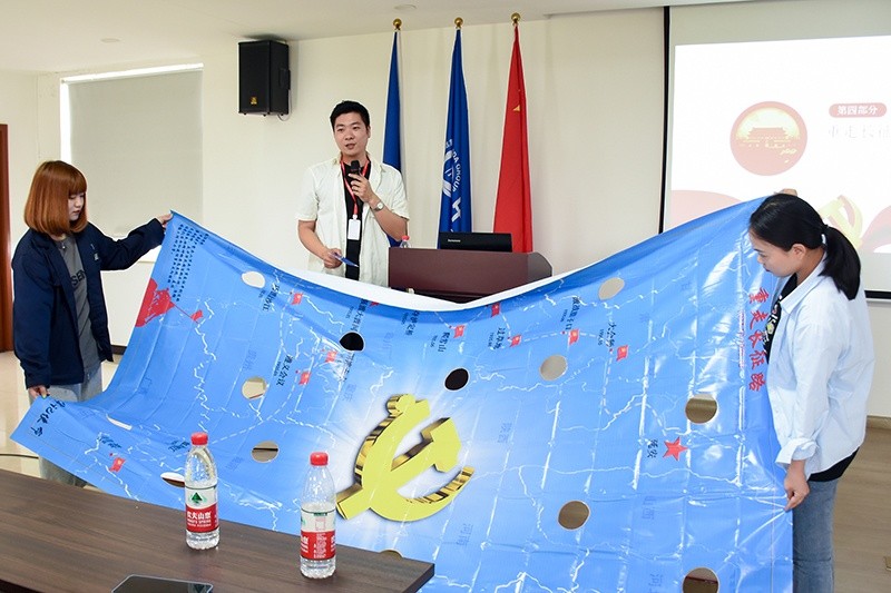 隨后,在陸徐佳的帶領(lǐng)下,全體成員體驗(yàn)了“重走長征路”的小游戲和組裝紅船模型,回顧了那段兩萬五千里的崢嶸歲月,也感受了“開天辟地、敢為人先,堅(jiān)定理想、百折不撓,立黨為公、忠誠為民”的紅船精神。秀水泱泱,紅船依舊,時代變遷,精神永恒,紅船精神時時刻刻在傳遞。
