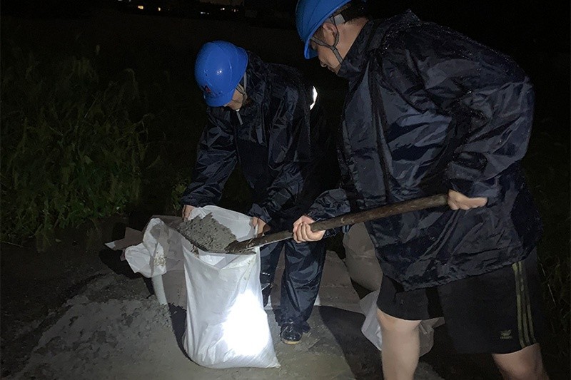 在恒洋熱電,除了做好常規(guī)抗臺(tái)工作部署外,公司黨支部還組織全體黨員24小時(shí)待命,實(shí)時(shí)關(guān)注臺(tái)風(fēng)動(dòng)態(tài)并協(xié)助值班人員做好抗臺(tái)搶險(xiǎn)工作。在得知這次臺(tái)風(fēng)有可能在嘉興附近二次登陸后,公司李忠華、常志良、顧奇等幾名黨員主動(dòng)請(qǐng)命,冒著大雨,頂著狂風(fēng),帶上手電前往填裝數(shù)十個(gè)沙袋,第一時(shí)間在廠區(qū)碼頭筑起了一道安全堤壩,以實(shí)際行動(dòng)踐行了黨員沖鋒在一線的責(zé)任擔(dān)當(dāng)!