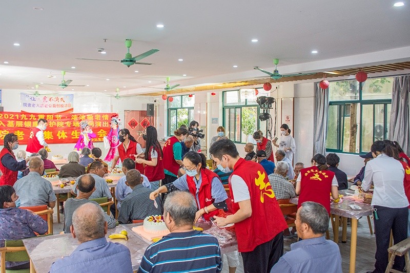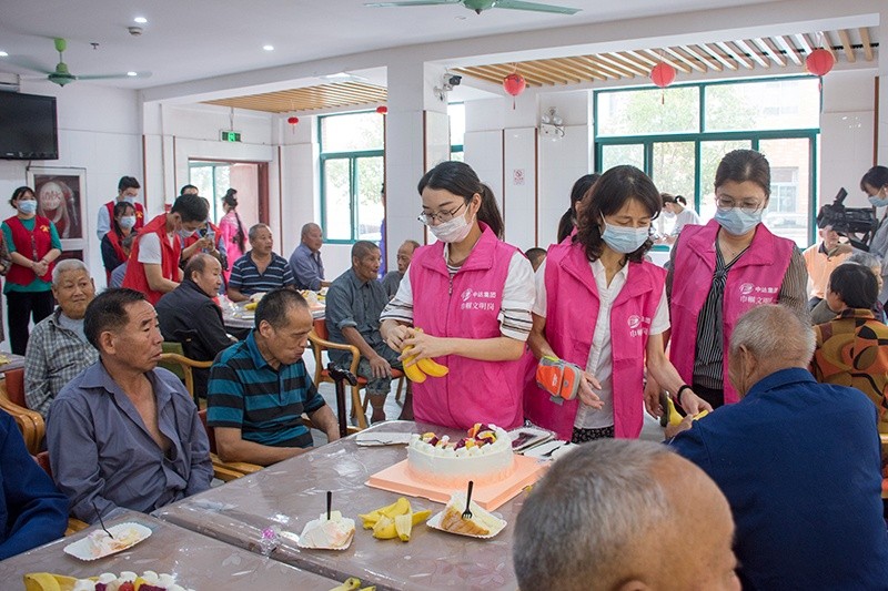 在九九重陽節(jié)之際,為深化黨史學習教育,弘揚中華民族尊老、愛老、敬老、助老的傳統(tǒng)美德,進一步推動新時代文明實踐走深走實,志愿服務活動常態(tài)長效,10月14日下午,中達集團及各子公司黨團員青年、志愿者們來到百步銀康養(yǎng)護院,為這里的老人舉辦集體生日,一起唱生日歌、吃蛋糕。