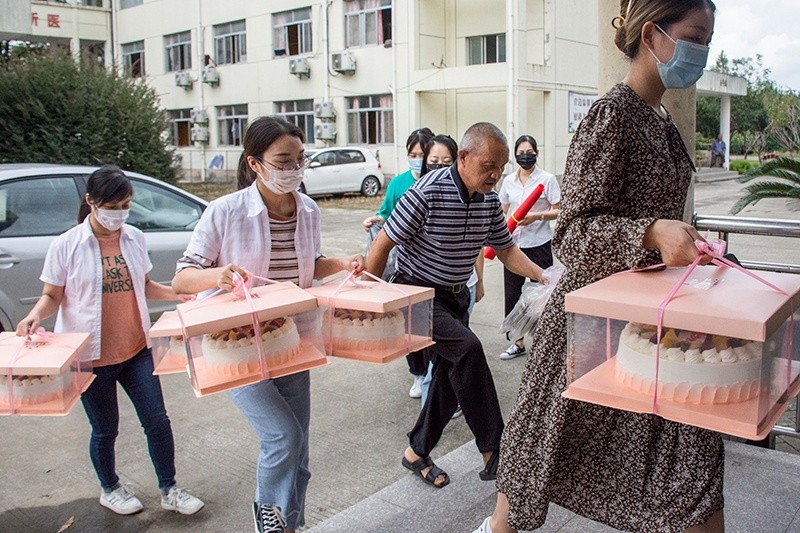 活動的最后,中達集團工會主席朱亞華還帶領志愿者來到了得勝村文化禮堂,為這里的老人們送上了甜蜜的蛋糕和節(jié)日祝福。