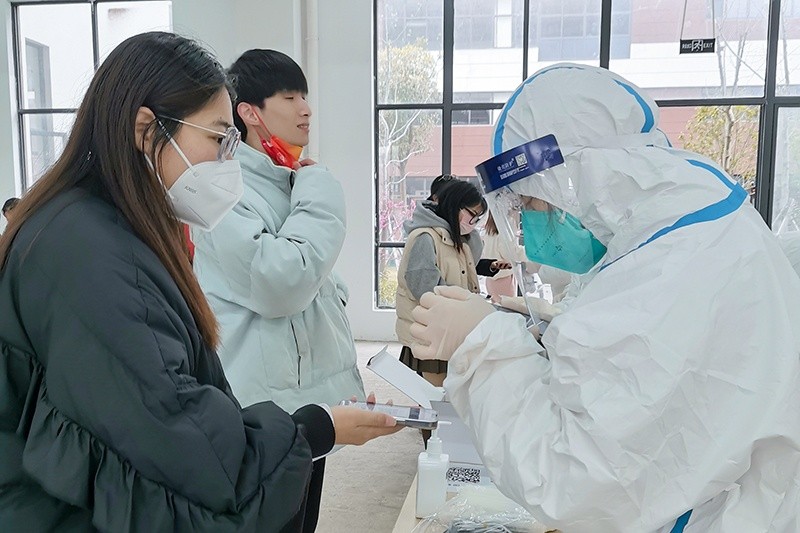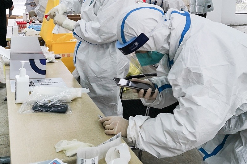 志愿者們在核酸檢測現(xiàn)場進行秩序引導、協(xié)助登記等協(xié)助工作。有的為不會使用微信小程序掃碼登記的居民提供指導幫助,有的配合醫(yī)生護士做好掃碼人員登記,有的協(xié)助特殊人群采樣等等。一米線、隔離帶、測體溫、查雙碼、信息登記,從入口到出口志愿者們幫助居民安排得井然有序,保證了各卡點檢測工作高效進行。志愿者們紛紛表示,“雖然我們不是醫(yī)生、護士,但我們應該盡自己的綿薄之力,和大家一起打贏這場疫情防控戰(zhàn)!”