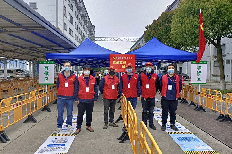 中達(dá)貨架積極響應(yīng)政府號(hào)召,在做好自身防疫的同時(shí),積極投入到了政府組織的全面防疫工作中。3月15日,中達(dá)貨架黨支部組建了一支由15名黨員和9名團(tuán)員組成的“最美志愿者”隊(duì)伍,24小時(shí)待命,全力配合政府的防疫工作。3月18日,百步鎮(zhèn)首次全員核酸檢測(cè)拉開了中達(dá)貨架志愿抗疫的序幕,24名志愿者分3組輪流服務(wù)在指定的崗位,測(cè)溫、查碼、引導(dǎo)、秩序維護(hù),不怕危險(xiǎn),有條不紊地完成了首次全民核酸檢測(cè)任務(wù)。3月31日,第二次全員核酸,志愿者們又一次奮戰(zhàn)在了百步新上泵工業(yè)園區(qū),積極配合政府順利進(jìn)行核酸檢測(cè)工作。