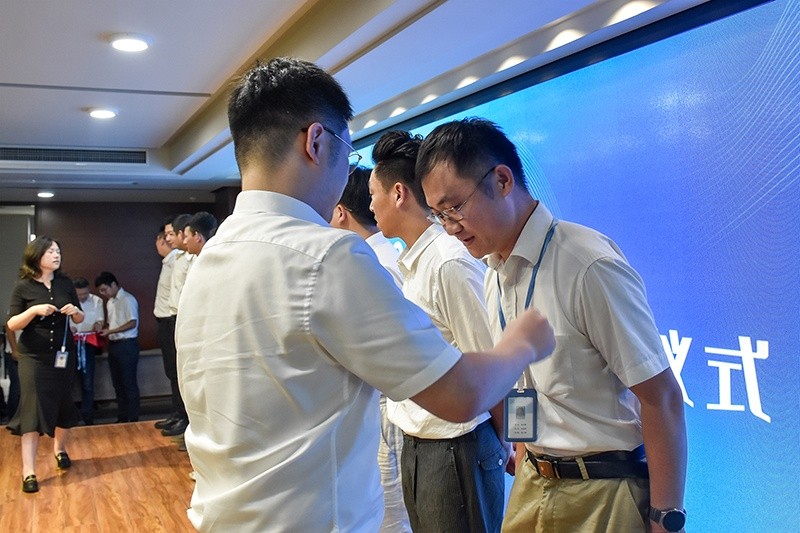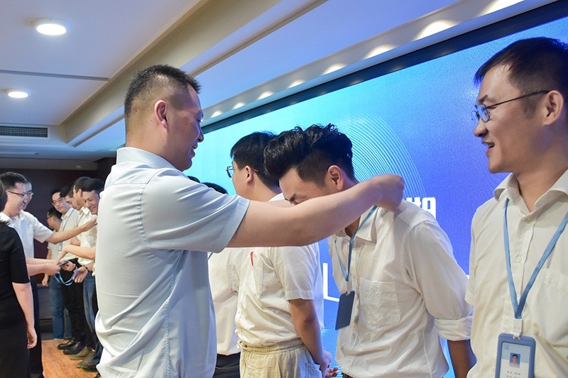 隨后,集團(tuán)董事長(zhǎng)、百年CLUB會(huì)長(zhǎng)金王濤帶領(lǐng)百年CLUB一期學(xué)員為各位二期學(xué)員授牌。二期學(xué)員由各子公司推薦,經(jīng)資料審核、集團(tuán)高層面試等層層選拔,最終共有11名學(xué)員成功進(jìn)入第二期百年CLUB。會(huì)上,各學(xué)員從工作經(jīng)歷、花名、心得等不同角度作了自我介紹,并通過(guò)不記名投票的方式,選舉產(chǎn)生了由趙玲苑、董飛、徐品兒、陸徐佳四人組成的二期班委。趙玲苑作為第二期百年CLUB班長(zhǎng)作表態(tài)性發(fā)言,提出后續(xù)將發(fā)揮班委責(zé)任,帶領(lǐng)二期學(xué)員做好本職工作,互幫互助,為百年中達(dá)不斷創(chuàng)造價(jià)值。