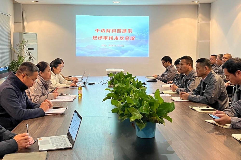 末次會(huì)議上,審核組五位專家分別發(fā)表了三天審核情況,對(duì)中達(dá)材料管理體系運(yùn)行的情況給予來(lái)積極評(píng)價(jià),一致認(rèn)為中達(dá)材料實(shí)施運(yùn)行的質(zhì)量、環(huán)境、職業(yè)健康安全、能源管理體系滿足標(biāo)準(zhǔn)要求,審核順利通過(guò)!
