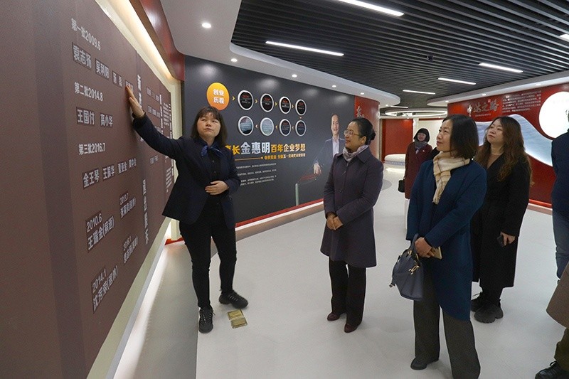 胡主席一行參觀了我司展廳,中達集團婦聯(lián)主席金王琴詳細介紹了中達集團60年來的發(fā)展情況。胡主席一行密切關(guān)心了集團在前三年疫情環(huán)境下的經(jīng)營狀況,及開年來的開工、員工返崗等情況。