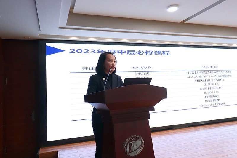 課前,中達(dá)內(nèi)部人才培養(yǎng)中心教務(wù)處主任吳雪艷詳細(xì)介紹了2023年度中層必修課程安排。年度培訓(xùn)課程分為必修和選修兩大類型,內(nèi)容涉及通識(shí)類、安環(huán)類、質(zhì)量類、生產(chǎn)類等10門課程,以特聘講師、內(nèi)訓(xùn)師團(tuán)隊(duì)以及百年CLUB二期學(xué)員三大陣營進(jìn)行線下授課,全面聚焦中層管理人員的培訓(xùn)與評(píng)估;培訓(xùn)采取積分制,期末將根據(jù)學(xué)員綜合考評(píng)評(píng)選年度優(yōu)秀學(xué)員,中層管理人員的績效及崗位晉升情況,與學(xué)分緊密掛鉤。