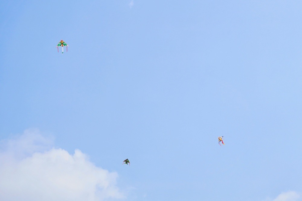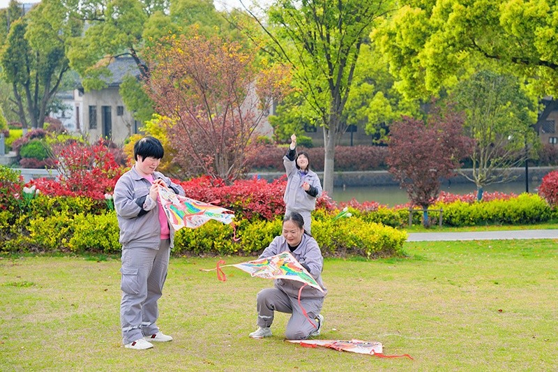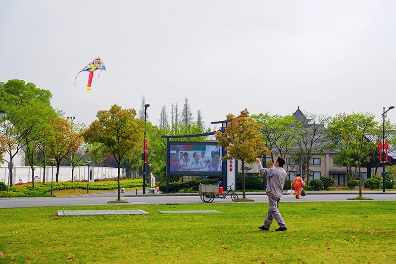 繪制結束,大家一同前往沈蕩藝術中心公園放飛。公園的綠蔭蔥蔥映襯著藍天,大家迎著春天的氣息,放飛屬于自己的紙鳶,感受與大自然相約的美好體驗,蔚藍的天空下顏色各異的紙鳶爭奇斗艷令大家大開眼界、目不暇接,也引得周邊市民紛紛駐足觀賞。
