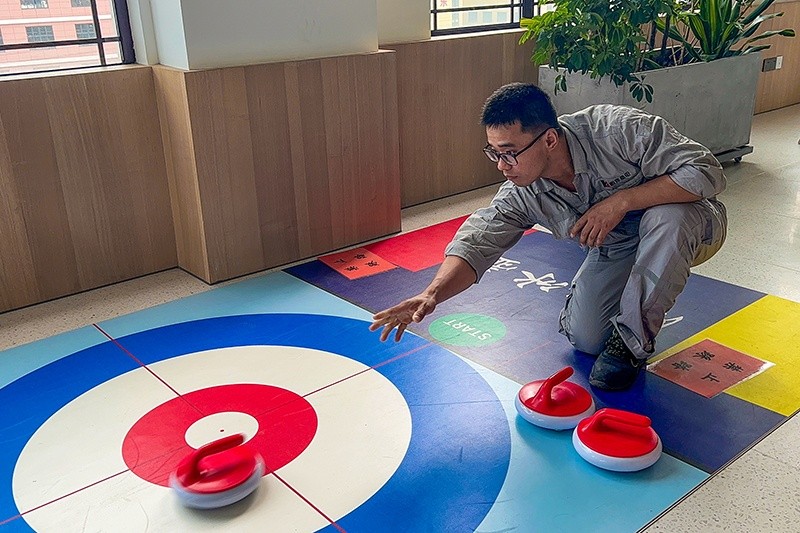 中午,社員們陸陸續(xù)續(xù)來(lái)到活動(dòng)現(xiàn)場(chǎng)進(jìn)行分組,參與本次活動(dòng)的20余人共分成三組,進(jìn)行3項(xiàng)比拼。第一項(xiàng)游戲是乒乓球顛球,帶球來(lái)回跑接力賽,各社員都緊張地盯著球防止球掉落,有快跑的,有穩(wěn)走的,各種方式無(wú)不體現(xiàn)了大家的獨(dú)門技巧。第二項(xiàng)游戲是扔沙包,大家需要將沙包拋成拋物線,輕輕落在板上才能進(jìn)洞。第三項(xiàng)游戲是旱地冰壺,大家對(duì)該項(xiàng)游戲都有著濃厚的興趣,紛紛提前嘗試,而在比賽中,有些社員還是由于緊張沒有把控好力度,但也玩得不亦樂乎。
