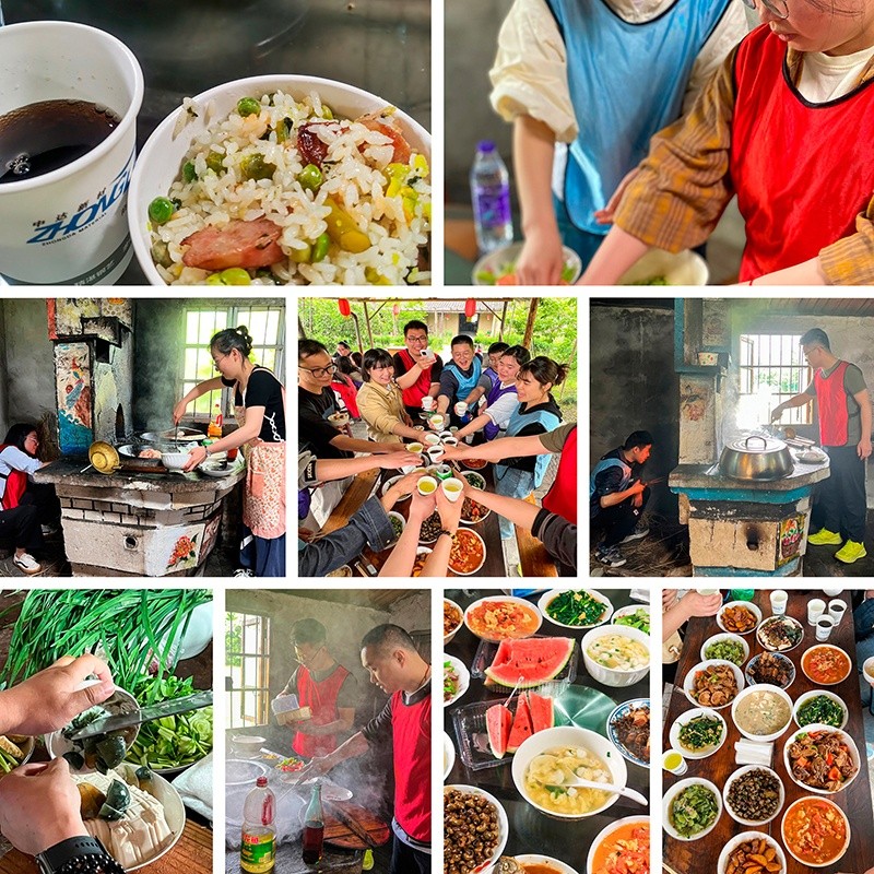 中午,大家體驗(yàn)了一把老底子的土灶鐵鍋烹美食。當(dāng)天,大家紛紛貢獻(xiàn)出自家菜園里的新鮮蔬菜,在各小隊(duì)長(zhǎng)的分配下,隊(duì)員們各司其職,生火、洗菜、配菜、掌勺,“廚藝爭(zhēng)霸賽”有條不紊地進(jìn)行著。經(jīng)過個(gè)把小時(shí)的戰(zhàn)斗,滿滿一桌色香味俱全的飯菜飄香滿屋。大家享用著自己的勞動(dòng)成果,感受片刻清閑。