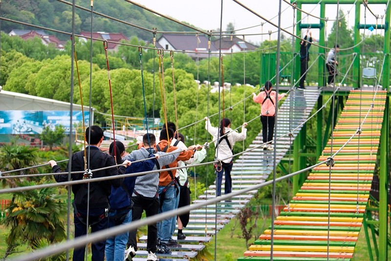 一下午的快樂時(shí)光在各種團(tuán)隊(duì)協(xié)作游戲中流淌。伴隨著發(fā)動(dòng)機(jī)的怒吼,一輛輛卡丁車疾馳賽道。油門轟鳴、加速轉(zhuǎn)彎、漂移摩擦,有趣刺激的卡丁車體驗(yàn)不僅鍛煉了大家的專注力、判斷力,還提高了身體協(xié)調(diào)性。在玻璃和木板鋪設(shè)的吊橋上,大家互相幫助、鼓勁,這項(xiàng)高空刺激挑戰(zhàn)活動(dòng)既可以鍛煉膽量、激發(fā)勇敢,又能讓人忘卻煩惱、愉悅身心。最后,在中和化學(xué)工程總經(jīng)理沈葉飛的帶領(lǐng)下,團(tuán)隊(duì)來(lái)到了高空漂流的最頂處,大家全副武裝、蓄勢(shì)待發(fā)。隨著工作人員將一艘艘漂流船放入水中,大家乘著皮艇順流而下,穿梭在蜿蜒流動(dòng)的玻璃道中,四面青山環(huán)繞、鳥語(yǔ)花香,這段驚險(xiǎn)刺激的漂流行程為本次團(tuán)建拓展活動(dòng)畫上了圓滿的句號(hào)。