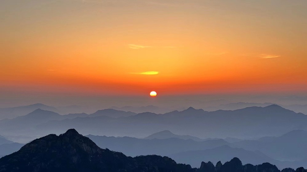 次日凌晨四點,閃耀青年們都早早起床觀看日出,此時山頂早已人山人海,期待日出的美景。太陽的升起讓黑暗天空猛地裂開一道口子,山谷亮堂了起來,云海、蟲鳴、鳥啼都變得清晰起來,一切都散發(fā)著生機(jī)。在黃山看日出,心曠神怡,讓人充滿希望與光明,希望我們每個人都能像初升的太陽,永遠(yuǎn)充滿朝氣。