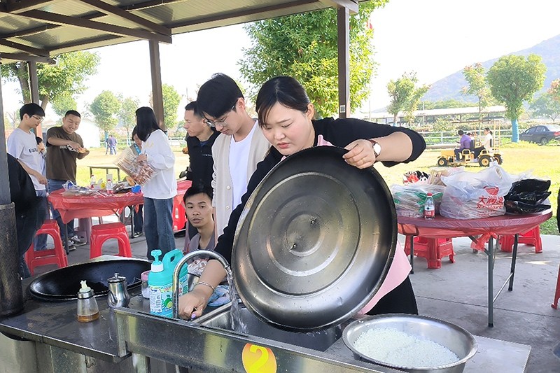 團(tuán)建活動(dòng)在暖場游戲中拉開帷幕,全員分成4個(gè)小組進(jìn)行PK。每組之間互相配合完成一系列任務(wù),所有人熱情飽滿、樂在其中,加強(qiáng)了團(tuán)隊(duì)溝通和協(xié)作。在午餐環(huán)節(jié),大家洗菜、淘米、生火、燒烤分工準(zhǔn)備午飯;同時(shí),烤串在烤架上翻滾,美食的香氣充滿整個(gè)空氣。餐后,有人采橘子、有人爬山,也有人選擇在田園中眺望遠(yuǎn)處風(fēng)景,在這些休閑活動(dòng)中,放松身心,釋放壓力。