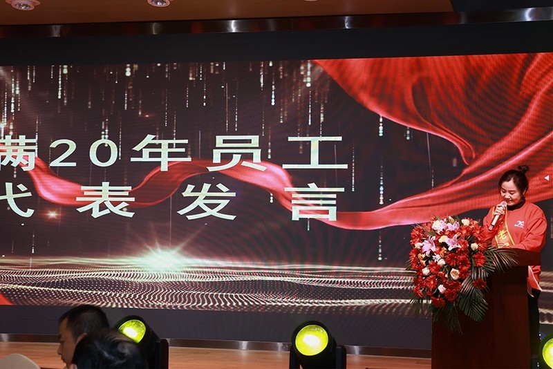 會議頒發(fā)了“特別貢獻(xiàn)獎”,表彰了滿15年、滿20年的員工,感謝他們在公司發(fā)展歷程中作出貢獻(xiàn),他們伴隨公司成長,見證了公司的輝煌歷程。滿20年員工代表胡赟燕在大會上發(fā)表了感言,分享自己在公司的工作經(jīng)歷和感悟,表達(dá)了對公司的感激之情。