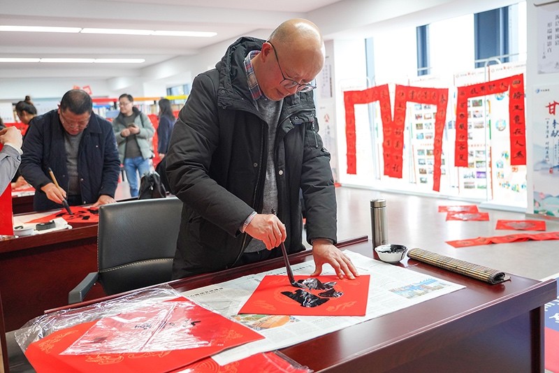 新春臨近,年味漸濃,為豐富廣大職工業(yè)余文化生活,1月31日下午,集團(tuán)工會(huì)特別邀請張?jiān)獫?jì)圖書館組織6位書法家來到集團(tuán)職工書屋,現(xiàn)場書寫春聯(lián),開展寫春聯(lián)送祝?;顒?dòng)。